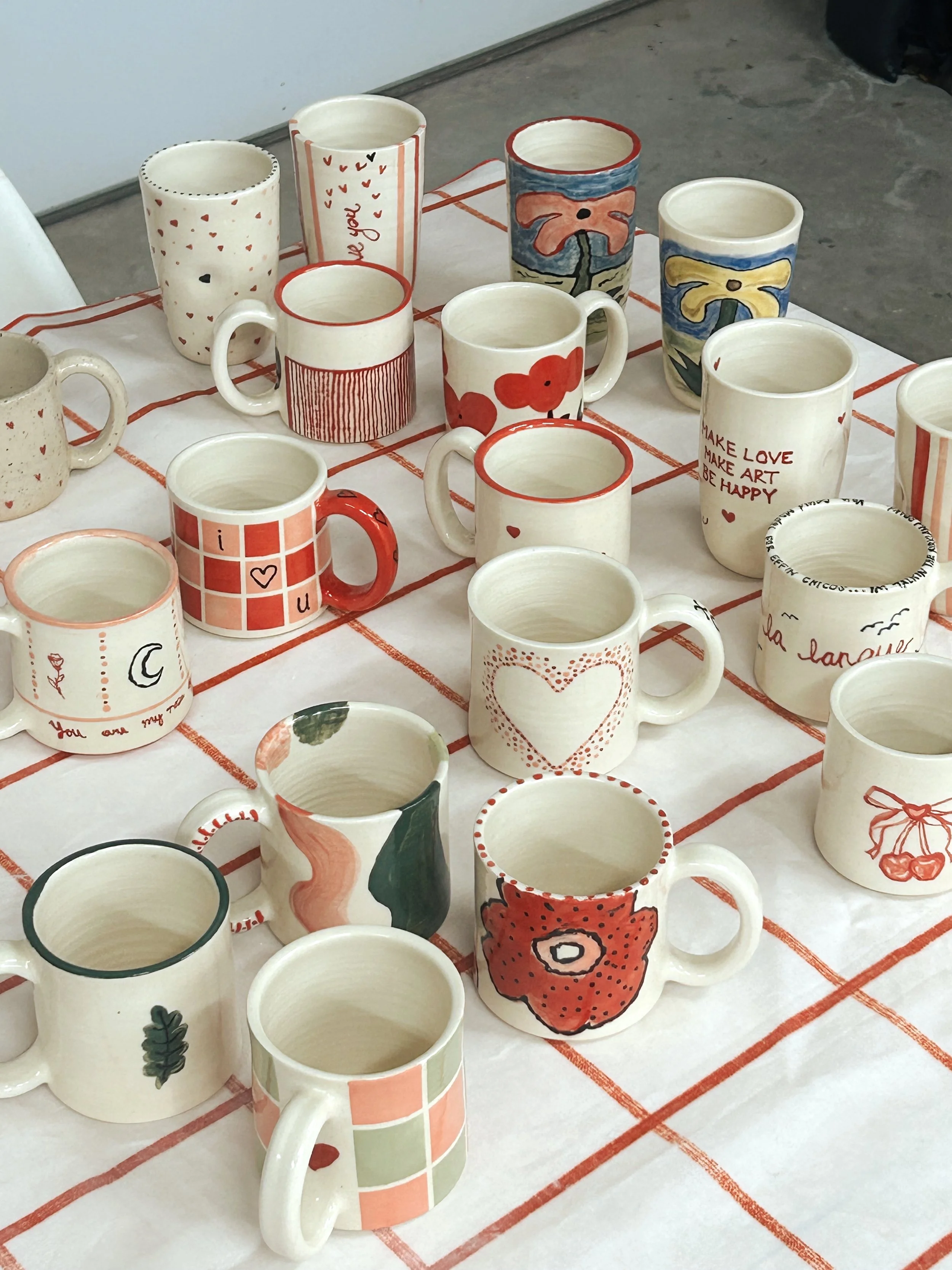 Choose between a wheel-thrown ceramic mug or travel tumbler, and decorate it with Valentine-inspired colors, patterns, words, or designs using a variety of painting techniques.